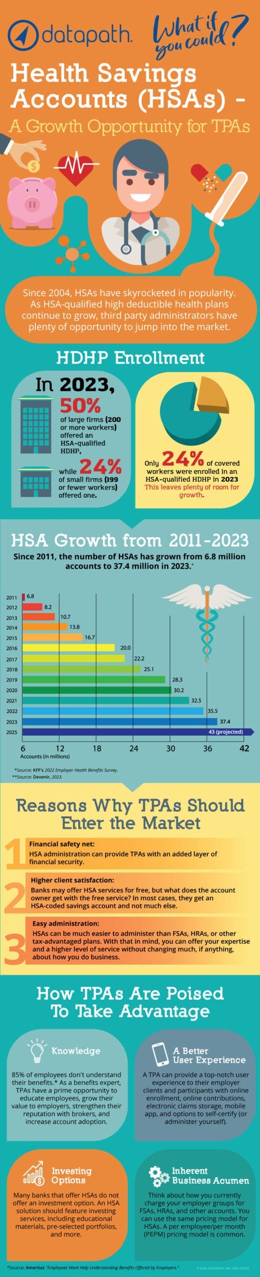 Since 2004, HSAs have skyrocketed in popularity. As HSA-qualified high deductible health plans continue to grow, third party administrators have plenty of opportunity to jump into the market.