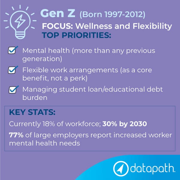 Gen Z wants mental health support and flexible work options. They see these as essential, not just perks. They use digital tools effortlessly and expect technology to integrate smoothly into their work, from benefits enrollment to daily chats. This generation values diversity, inclusion, and social responsibility, urging employers to support these ideals with real actions and benefits. Their concerns go beyond pay; they include holistic wellness, student loan help, and workplaces that reflect their values.